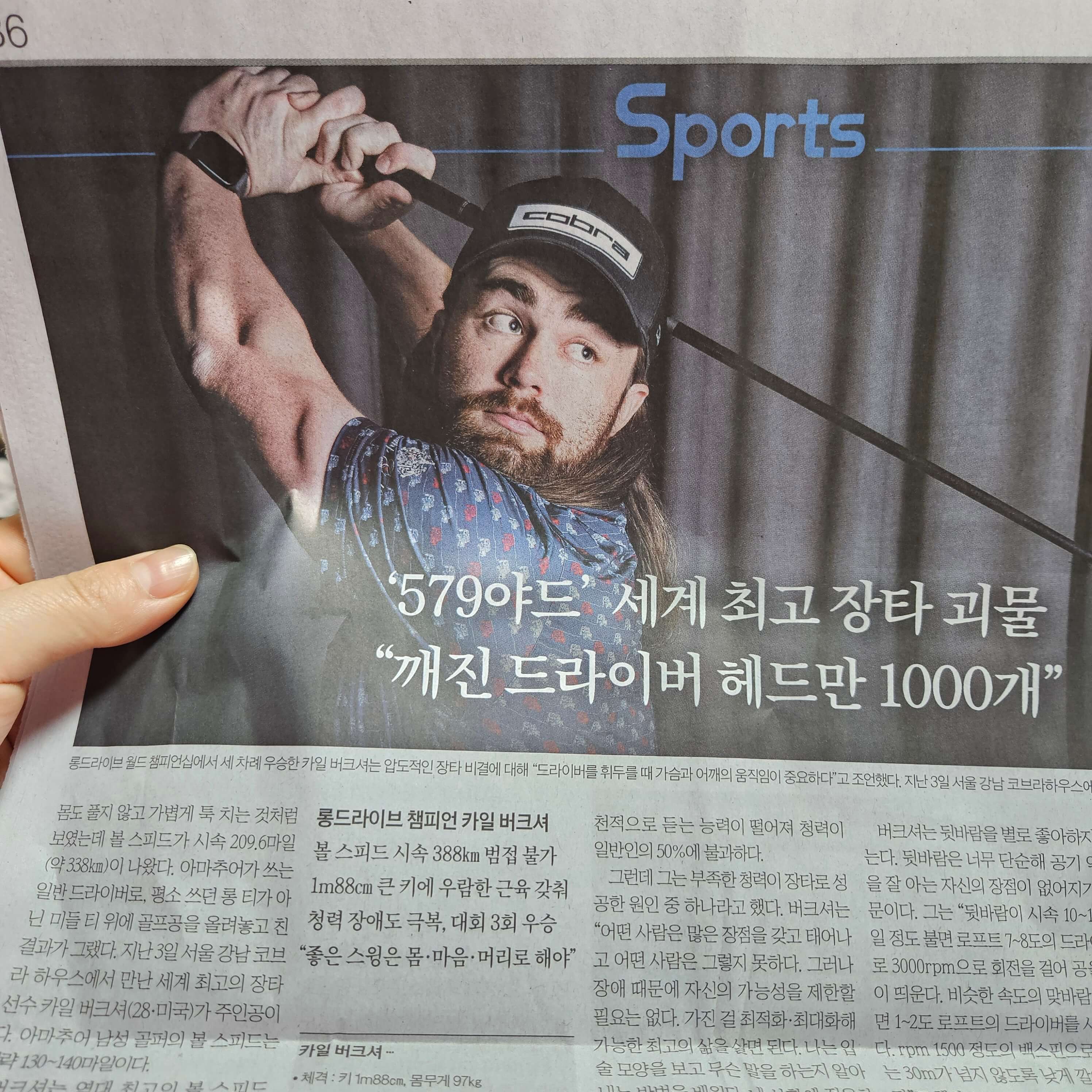 오늘 신문을 보다가 우연히 장타왕 카일 버크셔에 대해서 알게 되었습니다. 골프 장타팬들 사이에서는 유명한 장타왕 카일 버크셔의 플레이 스타일은 강력한 스윙으로 많은 사람들을 놀라게 했습니다. 평균 드라이버 비거리가 130m 가는 저로서는 그의 비거리에 놀라지 않을 수 없었습니다. 어떻게 하면 조금이라도 드라이버 비거리가 늘 수 있을까요? 이번에는 그의 스윙 동작과 플레이 스타일에 대해 자세히 알아보도록 하겠습니다.