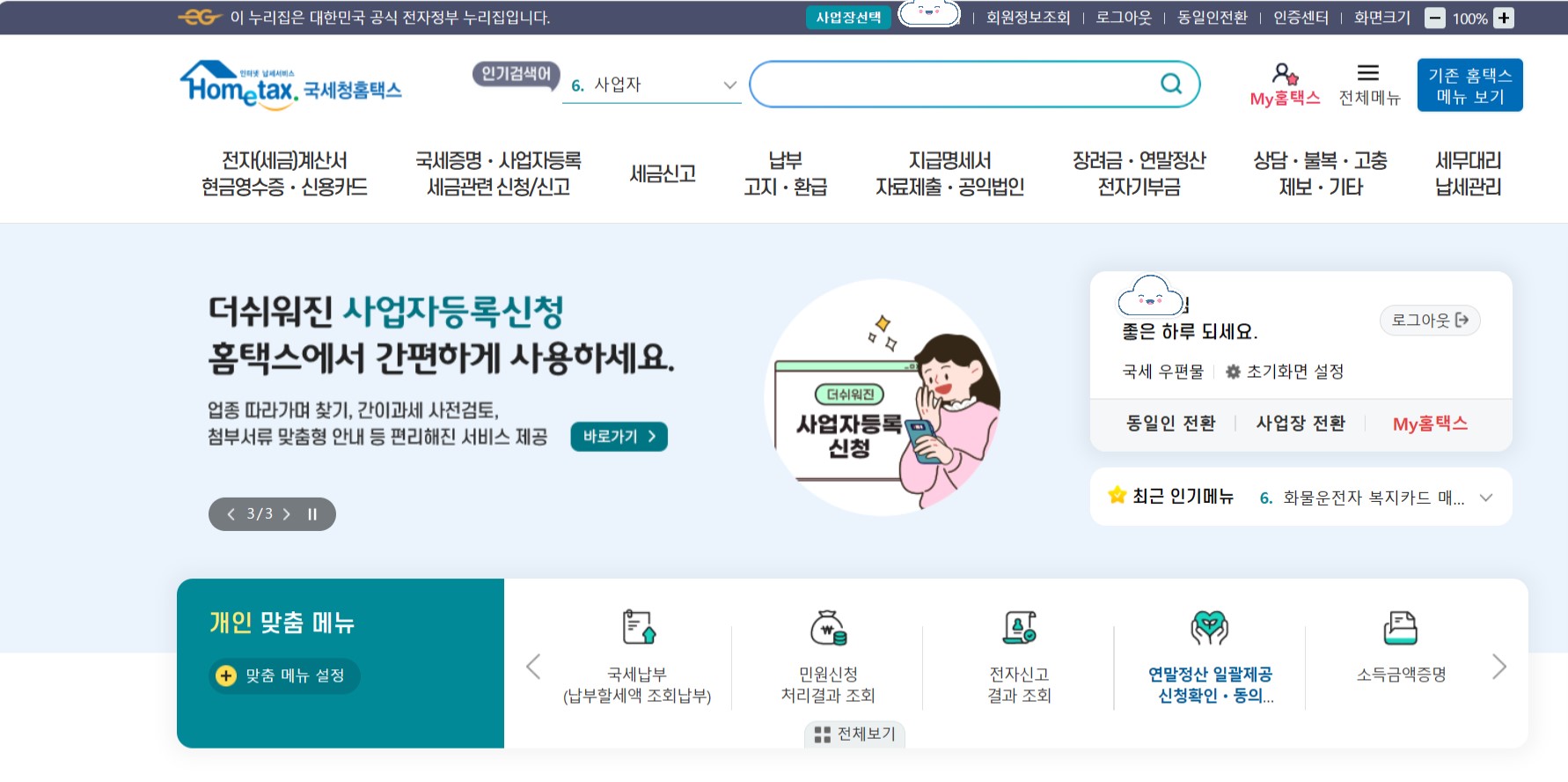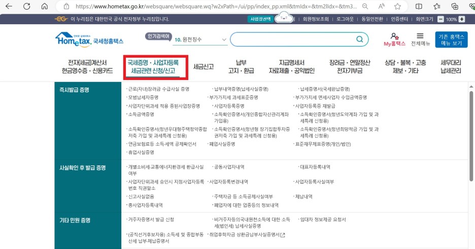 2. 국세증명 사업자등록 세금 관련 신청/신고 클릭